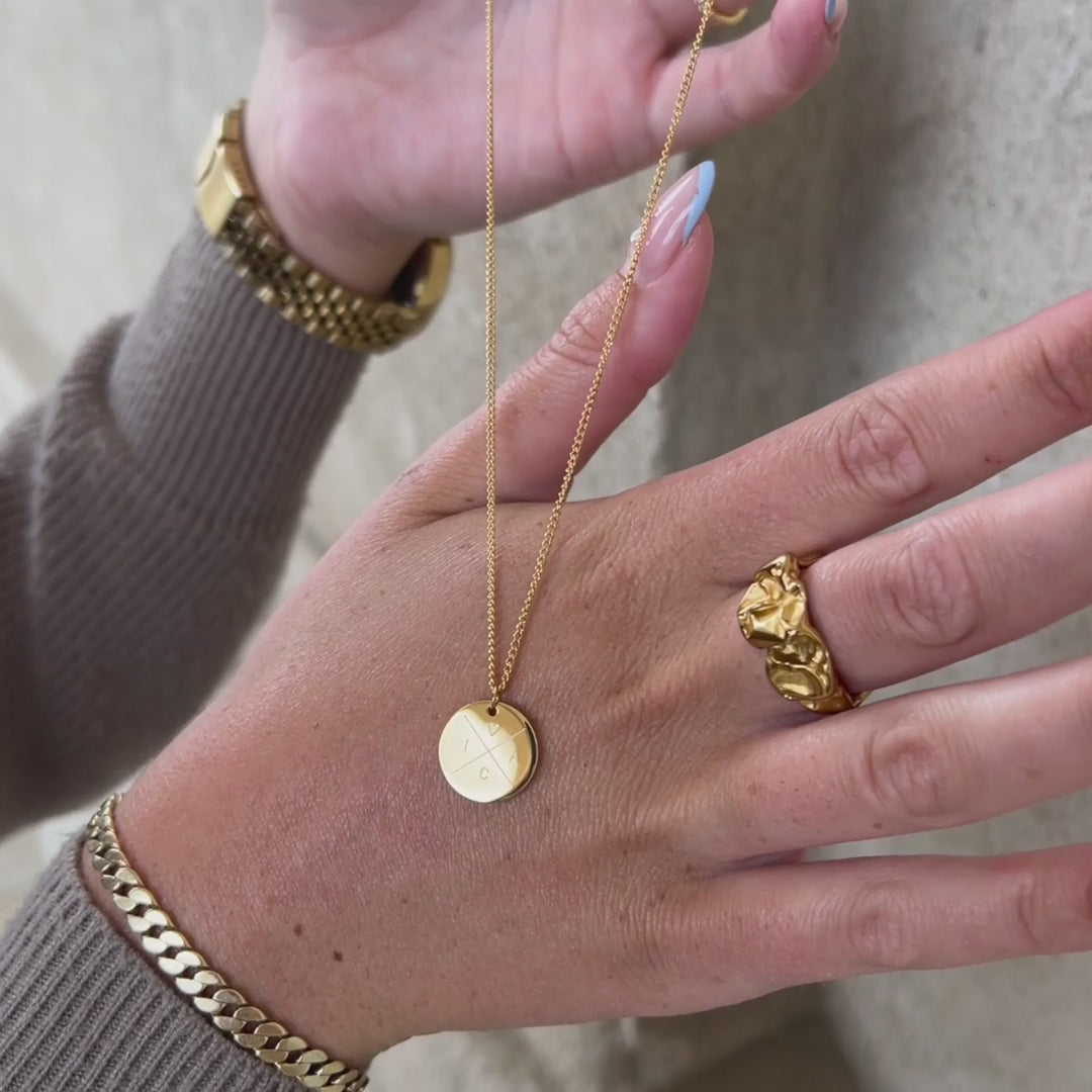 De ketting wordt gegraveerd met 4 letters op de voorkant van de hanger.
