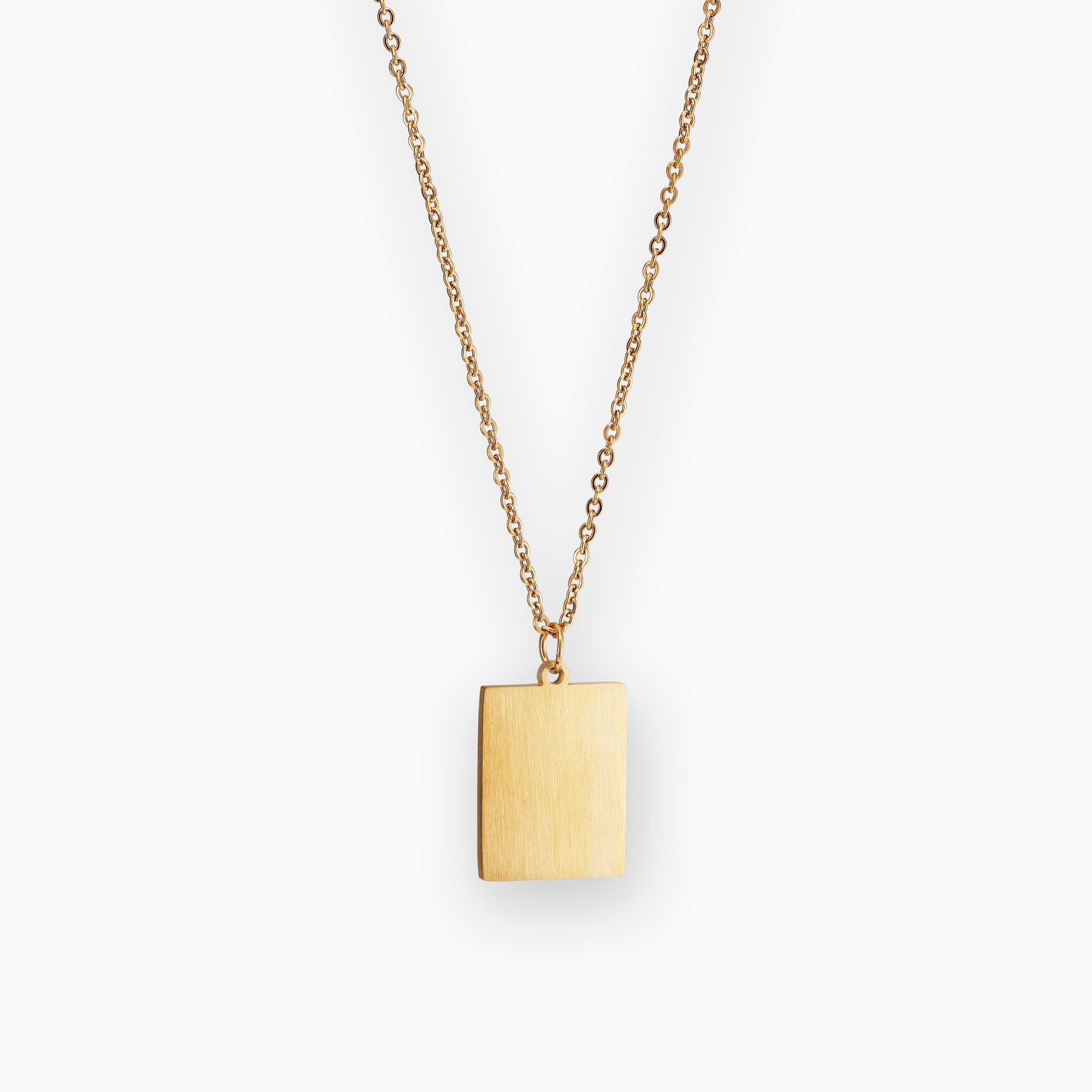 Herenketting met persoonlijke gravure. Een stijlvolle en strakke ketting met een rechthoekige hanger in een robuuste, glanzende afwerking. De ketting is verguld met 18-karaats goud.