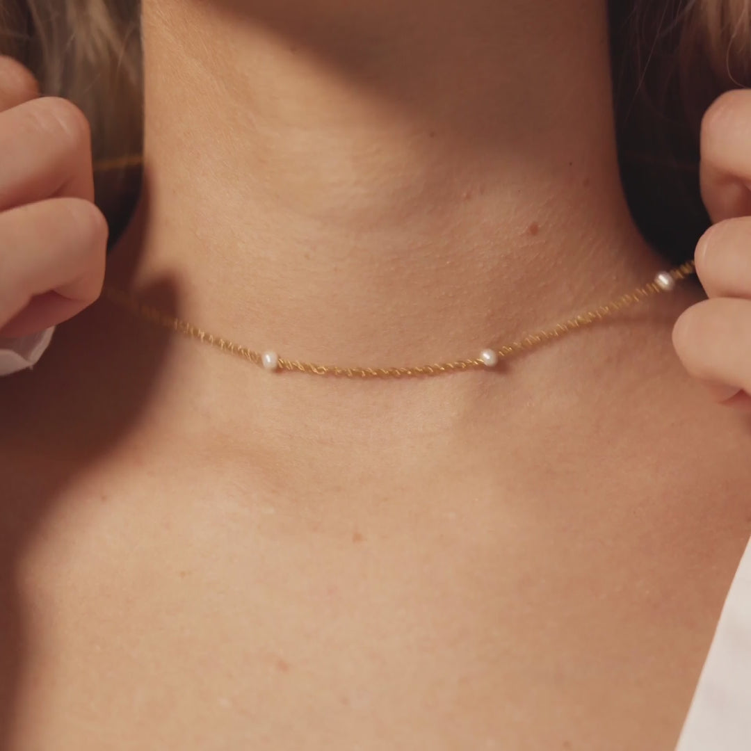 De parelketting is eenvoudig en stijlvol, met 5 parels aan de ketting bevestigd.